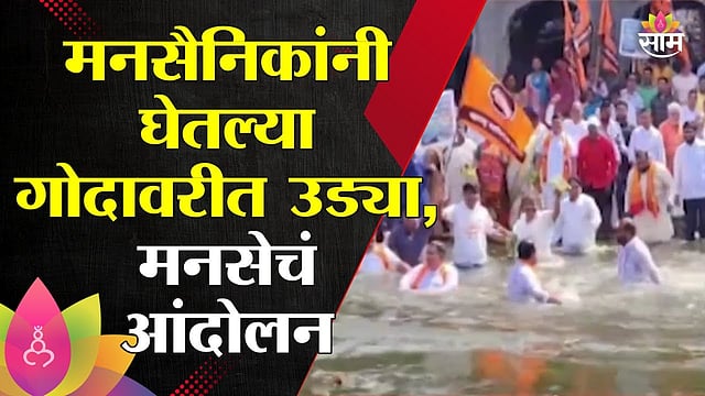 आज मनसेचे प्रदेश सरचिटणीस दिनकर पाटील यांच्या नेतृत्वात गोदावरी नदीमध्ये धडाधड उड्या मारून आंदोलन करण्यात आले. मनसे गुढीपाढवा मेळाव्यात राज ठाकरेंनी व्हिडिओ दाखवत नद्यांची झालेली अवस्था दाखवली होती. यानंतर मनसे आक्रमक झाली आहे, 2027 ला नाशिकमध्ये कुंभमेळा होणार असून नदीवर झालेली पानवेली, गोदावरीत सोडले जाणारे दूषित पाणी या सगळ्याच्या निषेधार्थ मनसे पदाधीकाऱ्यांनी नदीत उडी मारून प्रशासनाचा तीव्र निषेध व्यक्त केला.