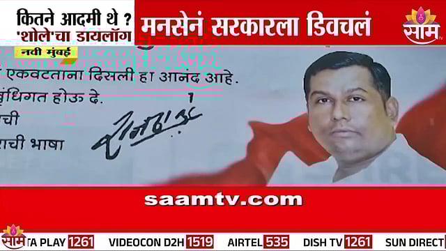 नवी मुंबईतील ऐरोली परिसरात झळकलेल्या एका आगळ्या-वेगळ्या बॅनरने सर्वांचे लक्ष वेधून घेतले आहे. नवी मुंबई ऐरोलीसेक्टर 3 रेल्वे स्टेशनंच्या परिसरात लावण्यात आलेल्या बॅनरवर सुप्रसिद्ध हिंदी चित्रपट शोलेमधील डायलॉग छापण्यात आला आहे. "कितने आदमी थे, सरदार दो, और तुम तीन... फिर भी वापस लौट आये!" अशा प्रकारचा बॅनर नवी मुंबई शहरामध्ये मनसे कडून लावण्यात आलेला आहेत. हिंदी सक्तीच्या मुद्यावरून मनसे प्रमुख राज ठाकरे आणि उद्धव ठाकरे हे एकत्र झाले होते. तसेच येत्या 5 जुलैला मोठ्या प्रमाणात मोर्चाचे देखील आयोजन करण्यात आले होते. मात्र या मोर्चाची धास्ती घेत सरकारने अखेर हा निर्णय रद्द केला. यावरूनच मनसे आणि ठाकरे गटाच्या कार्यकर्त्यांकडून नवी मुंबईत बॅनर लावण्यात आले असून महायुती सरकारवर खोचक टीकास्त्र सोडले आहे.