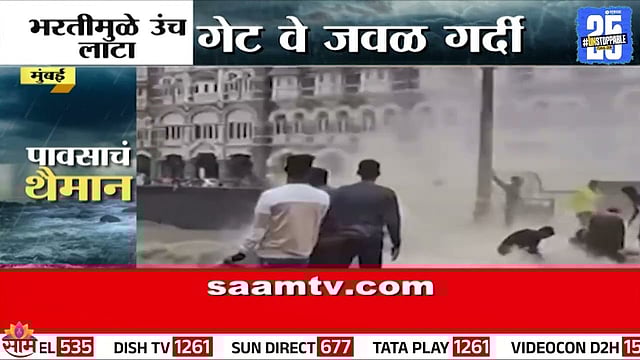 मुंबईतील गेट वे ऑफ इंडिया परिसरात आज सकाळपासून नागरिकांची मोठी गर्दी पाहायला मिळाली. समुद्राला आलेल्या भरतीमुळे उंचच उंच लाटा उसळताना दिसून आल्या, आणि या लाटांचं पाणी थेट रस्त्यापर्यंत पोहोचल्याने परिसरात थराराचे वातावरण निर्माण झाले.
