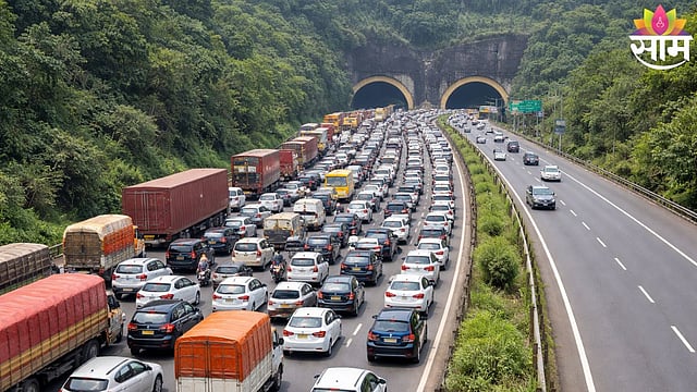 Long queues of vehicles seen on the Mumbai–Pune Expressway near Khandala Tunnel due to heavy traffic congestion. Saam Tv