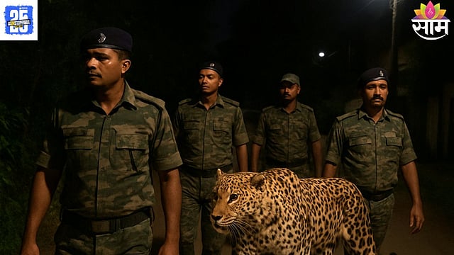 Forest department teams conduct intensive patrolling in Nagpur after suspected leopard sightings. Saam Tv