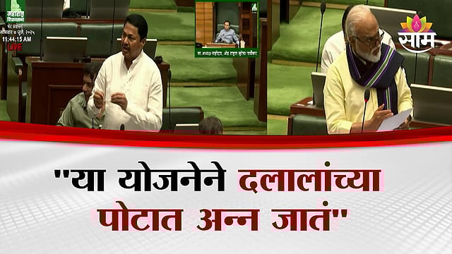 Congress Leader Nana Patole raising sharp questions in the Assembly over Deputy CM Ajit Pawar’s cancelled rice supply meeting. Saam Tv