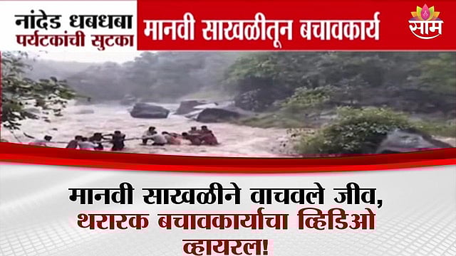 नांदेडच्या माहूर तालुक्यातील शेख फरीद धबधब्यावर पर्यटकांचा जीवावर बेतलेला थरारक प्रसंग समोर आला आहे. काल सायंकाळी अचानक आलेल्या मुसळधार पावसामुळे धबधब्याच्या पाण्यात पर्यटक अडकले. मात्र, स्थानिक नागरिकांच्या तत्परतेमुळे मोठा अनर्थ टळला. मानवी साखळी करून 8 ते 9 पर्यटकांची सुरक्षित सुटका करण्यात आली. या सुटकेचा थरारक व्हिडिओ सोशल मीडियावर जोरदार व्हायरल होत असून, पर्यटकांच्या निष्काळजीपणावरही प्रश्नचिन्ह उपस्थित झाले आहे.