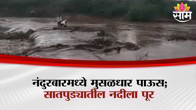 नंदुरबारमध्ये मुसळधार पाऊस सुरू असून सातपुडा पर्वत रांगेत गेल्या 48 तासांपासून मुसळधार पाऊस पडतोय. सततच्या पावसामुळे सातपुड्यातील सोन नदीला मोठा पूर आला तसेच अक्राणी तालुक्यातील सोन गावाजवळ असलेल्या नदीला पूर आला आहे. पूर पाण्याखाली गेल्याने 12 गावांचा संपर्क तुटल्यामुळे सोन नदीवरील पुलाच्या दोन्ही बाजूला वाहतूक ठप्प झाली आहे.