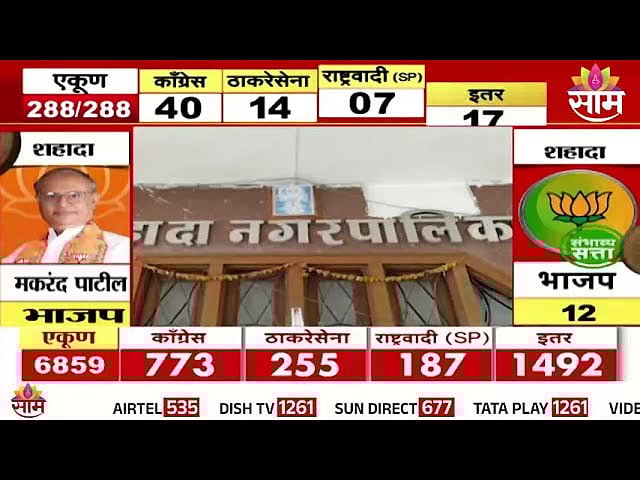साम टीव्हीने महा एक्झिट पोल घेतलाय. पुण्यापासून नागपूर आणि कोल्हापूरपासून जळगाव आणि वर्धासह राज्यभरात कोणत्या पालिकेवर कोणाची सत्ता? कोण होणार नगराध्यक्ष? हे जाणून घेतलं. या एक्झिट पोलमधून २८८ संभाव्य नगराध्यक्ष कोण असतील, हे समोर आलेय. नंदुरबारच्या शहादा नगराध्यक्षपदी भाजपच्या उमेदवाराचा संभाव्य विजय दिसतोय. भाजप पक्ष झेंडा फडकावेल असा अंदाज सामच्या महा एक्झिट पोलमध्ये वर्तवला जातोय. विजयी उमदेवाराची अधिकृत घोषणा २१ डिसेंबर रोजी आयोगाकडून करण्यात येईल.