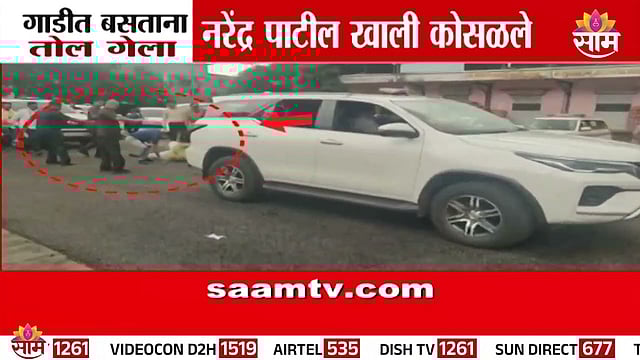 भाजप नेते नरेंद्र पाटील मुख्यमंत्री फडणवीस यांच्या ताफ्यात गाडीत बसत असताना कोसळले.