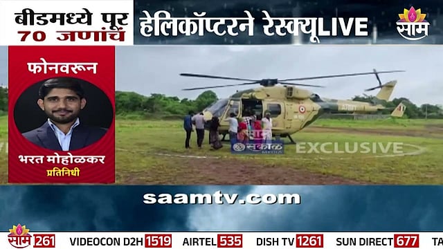 बीड जिल्ह्यात गेल्या 24 तासांपासून पाऊस सुरू असून मोठ्या प्रमाणात पूर आल्याने जनजीवन विस्कळीत झाले आहे. आष्टी तालुक्यातील कडा येथे अनेक जन हे नदीपात्राशेजारी अडकले होते. तसेच शेरीखुर्द येथील काहीजण पुरामध्ये अडकले होते. या लोकांना सुरक्षित बाहेर काढण्यासाठी प्रशासनाने तातडीने पावले उचलली. नाशिक येथून एनडीआरएफच्या पथकाला पाचारण करण्यात आले आणि या लोकांना सुरक्षित जागी हलवण्यासाठी हेलिकॉप्टर मागवण्यात आले. या हेलिकॉप्टरद्वारे 70 पेक्षा अधिक लोकांना रेस्क्यू करण्यात आले.मागच्या काही दिवसांपासून पडणाऱ्या या पावसामुळे बीड जिल्ह्यातील अनेक भागांमध्ये पुरस्थिति निर्माण झाली आहे.