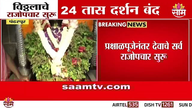 पंढरपूरमध्ये आषाढी वारीची जय्यत तयारी आणि लाखोंच्या संख्येने झालेल्या भक्तांच्या दर्शनानंतर आजपासून श्री विठ्ठल रुख्मिणी मंदिरात देवाच्या दर्शनाला विश्रांती देण्यात आली आहे. २७ जूनपासून सुरू असलेलं २४ तास अखंड दर्शन आजपासून थांबवण्यात आलं असून, विठ्ठलाच्या पारंपरिक राजोपचारांना सुरुवात करण्यात आली आहे. वारीच्या काळात लाखो वारकऱ्यांनी विठुरायाचं दर्शन घेतलं. त्या पार्श्वभूमीवर देवाला विश्रांती देण्याची परंपरा पाळली जाते.