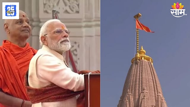 उत्तर प्रदेशातील अयोध्येत आज राम मंदिराच्या शिखरावर पंतप्रधान नरेंद्र मोदी यांच्या हस्ते ध्वजारोहण सोहळा पार पडला. या ऐतिहासिक आणि खास कार्यक्रमासाठी अयोध्या नगरी सजली होती. राम मंदिराच्या शिखरावर नरेंद्र मोदी यांच्या हस्ते शिखरावर फडकविण्यात आले. हा भगवा ध्वज तब्बल ११ फूट रूंद आणि २२ फूट लांबीचा असून, अत्यंत भव्य असल्याची माहिती आहे.