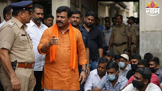 Shiv Sena city chief Nana Bhangire hands over alleged bogus voters to police during Pune civic polls. Saam tv