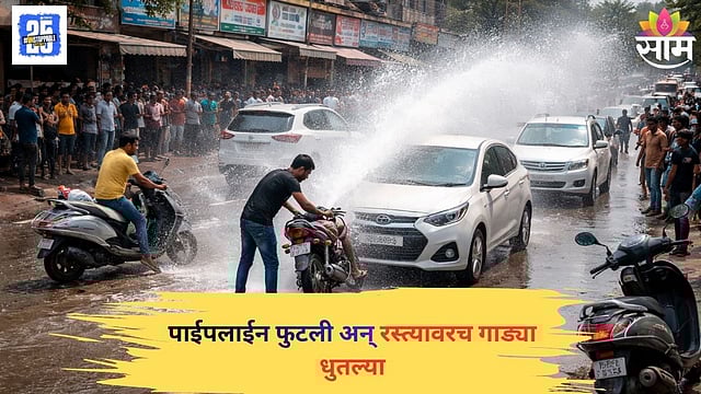 पुण्याच्या राजगुरुनगर शहराला पाणीपुरवठा करणाऱ्या पाईपलाईनला गळती लागल्याने रस्त्यालगत जोरदार पाण्याचे फवारे उडू लागले. यावेळी मात्र या पाण्याच्या अपव्ययाकडे लक्ष देण्याऐवजी काही नागरिकांनी याच फवाऱ्यांचा वापर करत आपली वाहने धुण्याची हटके शक्कल लावली. रस्त्यावरून ये-जा करणाऱ्या दुचाकी आणि चारचाकी वाहनांनी थेट पाण्याच्या फवाऱ्यातून जात ‘फ्री कार-वॉश’चा अनुभव घेतला. पाणी अक्षरशः रस्त्यावर वाहत असतानाही हे दृश्य पाहण्यासाठी अनेकांनी गर्दी केली. एकीकडे लाखो लिटर पाणी वाया जात असताना, दुसरीकडे नागरिकांची ही अनोखी शक्कल चर्चेचा विषय ठरणारी राजगुरुनगरमध्ये पाहायला मिळाली.