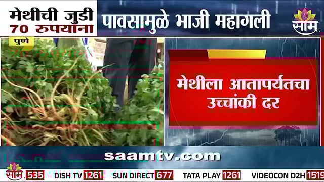 पावसाला सुरुवात झाली, की दरवर्षी पालेभाज्यांचे मोठे नुकसान होते. परिणामी आवक घटत असते. तशीच परिस्थिती आता निर्माण झाली आहे. त्यामुळेच पालेभाज्यांचे भाव वाढले आहे. किरकोळ बाजारात मेथीच्या जुडीची ६० ते ७० रुपयांना विक्री करण्यात आली आतापर्यंतचा हा उच्चांकी दर मिळत आहे.