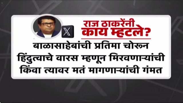 मनसे अध्यक्ष राज ठाकरे यांनी बाळासाहेब ठाकरे यांच्या पुण्यतिथीनिमित्त एक पोस्ट लिहून शिंदे सेना आणि भाजपवर अप्रत्यक्षपणे निशाणा साधला आहे. बाळासाहेबांनी हिंदूंकडे कधीही व्होट बँक म्हणून पाहिले नाही, असे त्यांनी या पोस्टमध्ये म्हटले आहे. राज ठाकरे म्हणाले, त्यामुळे बाळासाहेबांची प्रतिमा चोरून हिंदुत्वाचे वारस म्हणून मिरवणाऱ्यांची किंवा त्यावर मत मागणाऱ्यांची गंमत वाटते. ज्यांना ना प्रबोधनकार माहित आहेत. ना बाळासाहेब त्यांना बाळासाहेबांच्या विचारांची समृद्धी कळणार नाही असेही ते म्हणाले. भाजपचा कमंडल वाद फोफावण्याआधीच बाळासाहेबांनी हिंदू म्हणून अस्मिता जागी केली होती असेही राज ठाकरे यांनी आपल्या पोस्टमध्ये नमूद केले आहे.