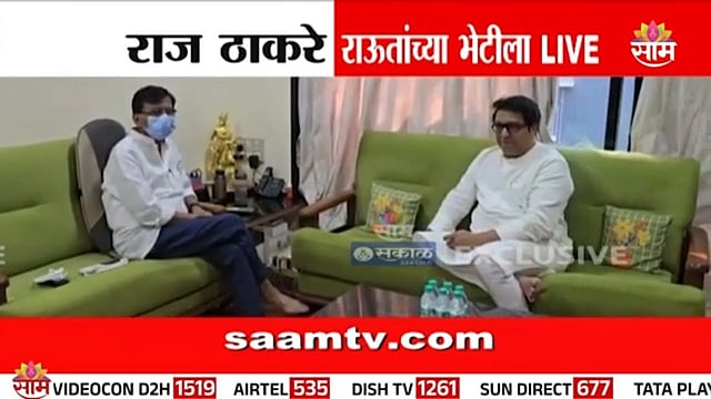 Raj Thackeray meeting Shiv Sena (Thackeray group) MP Sanjay Raut at his Bhandup residence to inquire about his health. Saam Tv