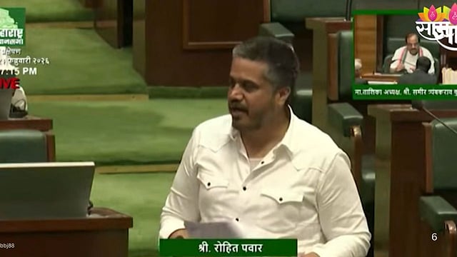 Rohit Pawar turns emotional while paying tribute to Ajit Pawar during the Maharashtra Budget Session in the Assembly. saam tv
