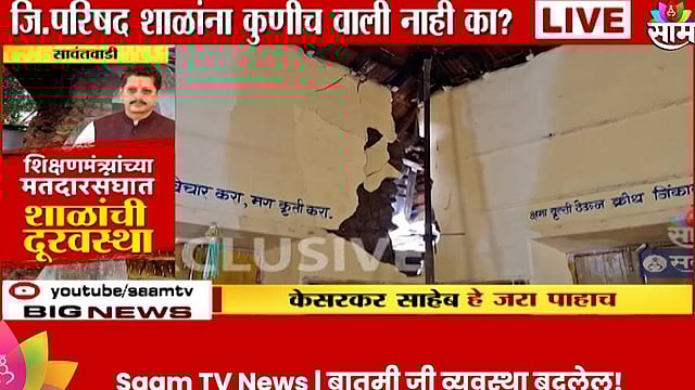सावंतवाडीच्या शाळेमध्ये भिंत कोसळली आहे.सुदैवाने शाळा बंद असल्याने मोठा अनर्थ टळला आहे.हा सर्व प्रकार शिक्षण मंत्री दीपक केसरकर (Deepak Kesarkar) यांच्याच मतदार संघातील झेडपी शाळेत घडला आहे. त्यानंतर भिंत कोसळलेल्याच वर्गात शाळा भरवण्यात आल्याने पालकांनी संताप व्यक्त केला आहे. स्लॅपची पडझड झाली असून देखील विद्यार्थी याच ठिकाणी शिक्षण घेत असल्याने पालक संतापले आहेत. मोठी दुर्घटना घडली असती तर त्याला जबाबदार कोण असणार असा सवाल पालक वर्गाकडून विचारला जात आहे.