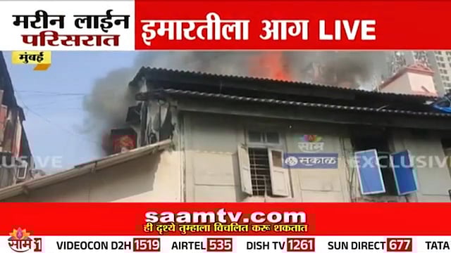 दक्षिण मुंबईतील मरीन लाईन्स परिसरात आज दुपारी एका दुमजली इमारतीला भीषण आग लागल्याने मोठी खळबळ उडाली आहे. आग इतकी भयानक होती की काहीवेळातच संपूर्ण इमारत आगीच्या भक्षस्थानी पडली.