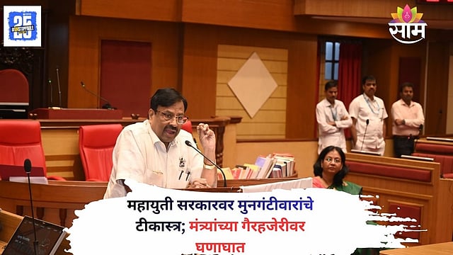 Sudhir Mungantiwar expressing anger in the Assembly over the absence of ministers during the Nagpur session. Saam Tv