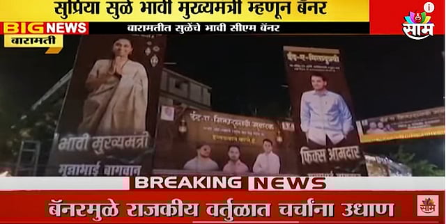 सुप्रिया सुळे भावी मुख्यमंत्री, युगेंद्र पवार भावी आमदार... आशा आशयाचे बॅनर्स बारामतीमध्ये झळकले आहेत. या बॅनर्सने राज्याचे लक्ष वेधले आहे. बारामतीतील गुणवडी चौकात फुल अँड फायनल ग्रुपच्या वतीने पोस्टर्स लावण्यात आले आहेत.