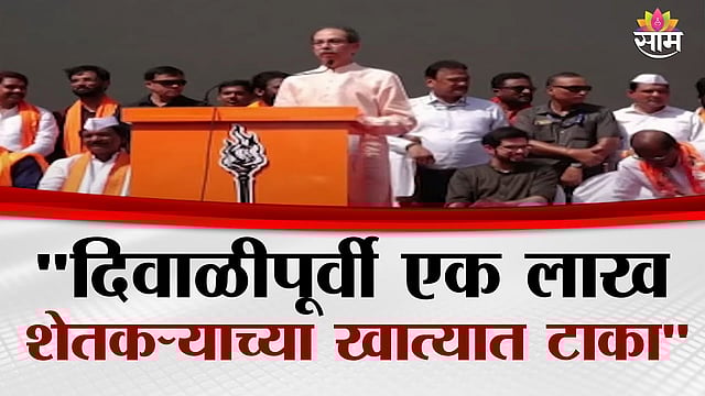 Demands ₹1 Lakh Deposit For Farmers Before Diwali: संभाजीनगरमध्ये झालेल्या हल्लाबोल मोर्चादरम्यान उद्धव ठाकरे यांनी मुख्यमंत्री देवेंद्र फडणवीस यांच्यावर जोरदार टीका केली. दिवाळीपूर्वी शेतकऱ्यांच्या खात्यात एक लाख रुपये जमा करा, असे थेट आव्हान ठाकरे यांनी दिले.