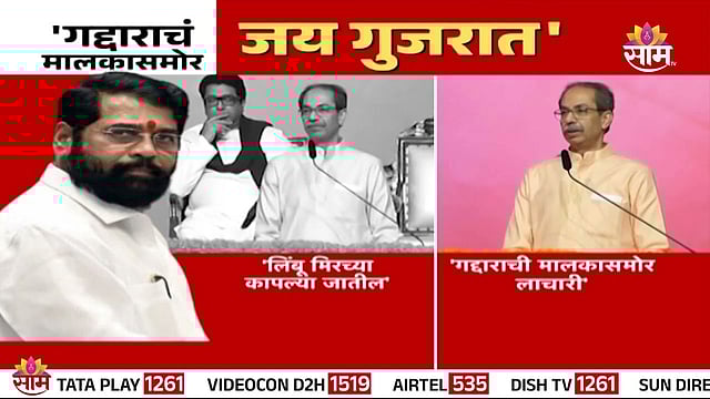 उपमुख्यमंत्री एकनाथ शिंदे यांनी पुण्यात अमित शाहं समोर 'जय गुजरात' अशी घोषणा केली. यावर उद्धव ठाकरेंनी जोरदार हल्लाबोल चढवला. उद्धव ठाकरे म्हणाले, काल एक गद्दार म्हणाला, जय गुजरात किती लाचारी करायची. आपला मालक आला म्हणून त्याच्यासमोर जय गुजरात म्हणणारा गद्दार आपल्या बाळासाहेबांच्या विचारांचा पाईक असू शकेल? त्यामुळे आताच उघडा डोळे. नाहीतर कायमचे मिटतील. आता आलेली जाग जाणार असेल तर स्वतःला मराठी आईची मुलं म्हणू नका असा घणाघात देखील उद्धव ठाकरेंनी केला. पुढे बोलताना उद्धव ठाकरे म्हणाले तुम्ही पुष्पा चित्रपट बघितला असेल दाढीवरून हात फिरवत म्हणतो, झुकेगा नहीं साला, तसे हे गद्दार म्हणत आहे की उठेगा नहीं साला. कुछ भी बोल उठेगा नही. अरे कसा उठणार, आहे काय तुझ्याकडे उठण्यासारखं असं म्हणताच सभागृहात एकच हशा पिकला.
