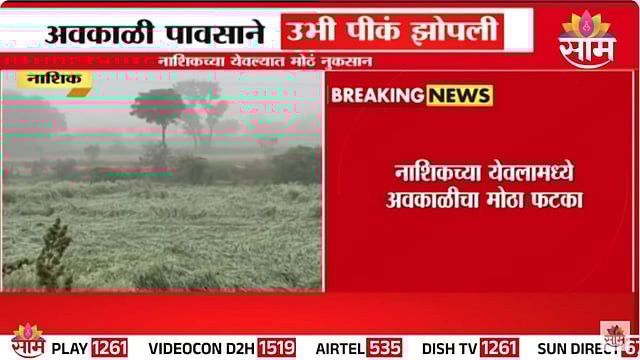 नाशिक जिल्ह्याच्या येवला तालुक्यात काल झालेल्या अवकाळी पावसाने शेतकऱ्यांच्या हातातोंडाशी आलेला घास हिरावून घेतला आहे. अवकाळी पावसाचा जोर इतका होता की काढणीला आलेली उभी पिकं झोपली आहे. त्यामुळे संक्रांतीपूर्वीच शेतकऱ्यांवर संक्रांत आली आहे. आधीच शेती पिकांना भाव मिळत नसल्याचे शेतकरी हैराण होते त्यात बेमोसमी पावसाने होतं नव्हतं पीक वाया गेलं आहे. त्यामुळे येथील शेतकऱ्यांवर सुल्तानी आणि आसमानी अशी दोन्ही संकटं आलेली दिसत आहेत. या नुकसानग्रस्त पिकांचे तातडीने पंचनामे होऊन नुकसान भरपाई मिळावी अशी मागणी आता शेतकऱ्यांकडून होत आहे.
