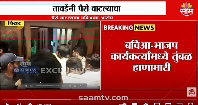 vinod tawde money distribution : ऐन निवडणूक काळातील आतापर्यंतची सर्वात मोठी बातमी समोर आली आहे. भाजपचे सरचिटणीस विनोद तावडे यांच्यावर बविआने गंभीर आरोप केलाय. विनोद तावडे यांनी पैसे वाटल्याचा आरोप बविआने केलाय. मागील तीन तासांपासून बविआचे कार्यकर्त्ये हॉटेलमध्ये आणि बाहेरही तळ ठोकून उभे आहेत. तावडेंना बविआच्या कार्यकर्त्यांनी घेरले. यावेळी भाजप कार्यकर्ते आणि बविआच्या कार्यकर्त्यांमध्ये हाणामारी आणि राडा झाला.