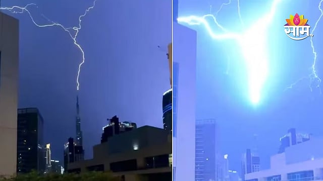 संयुक्त अरब अमिरातीमध्ये (UAE) सध्या जोरदार पावसाने हजेरी लावली आहे. वादळी पावसात निसर्गाचा एक अद्भूत आणि तितकाच थरारक अनुभव पाहायला मिळाला. दुबईतील आणि जगातील सर्वात उंच इमारत असलेल्या 'बुर्ज खलिफा'वर पावसादरम्यान वीज कोसळल्याची घटना घडली आहे. आकाशातून थेट इमारतीच्या शिखरावर वीज पडल्याचा हा क्षण कॅमेऱ्यात कैद झाला. त्याचे फोटो आणि व्हिडिओ सध्या सोशल मीडियावर मोठ्या प्रमाणात व्हायरल होत आहेत.