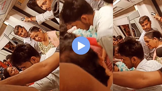 दिल्ली मेट्रो म्हणजे भांडण-तंटा, फॅशन शो आणि प्रेमवीरांचा अड्डा असंच चित्र पाहायला मिळतं. मेट्रोतील अनेक व्हिडिओ सोशल मीडियावर व्हायरल होत असतात. कधी जागेवरून भांडण तर, कधी प्रेमवीरांचे रोमान्स असले प्रकार घडताना दिसतात. दिल्ली मेट्रोमधील असाच एक व्हिडिओ सोशल मीडियावर व्हायरल होत आहे. व्हिडिओत रोमान्स करणाऱ्या कपलला एका महिलेने चांगलच सुनावलंय.