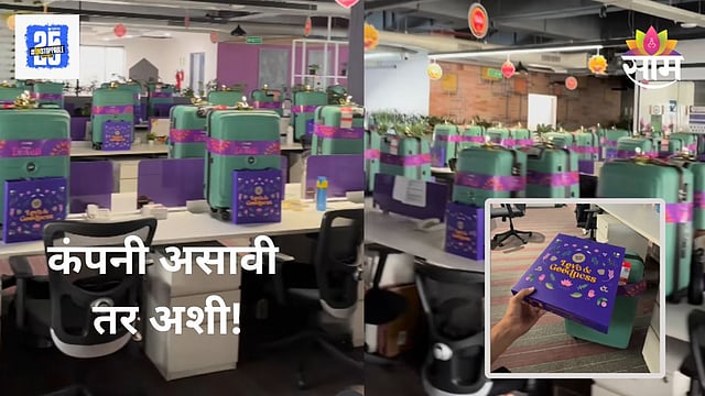 व्हायरल व्हिडिओमध्ये दिसत आहे की, कंपनीने कर्मचाऱ्यांच्या डेस्कवर VIP ब्रँडच्या सुटकेस बॅग ठेवल्या आहेत. त्याचसोबत मिठाई, दिवादेखील दिली आहे. या मोठ्या बॅगच्या आत आणखी एक लहान बॅग आहे.या कर्मचाऱ्यांना दिवाळीचं हे बेस्ट गिफ्ट मिळालं आहे.