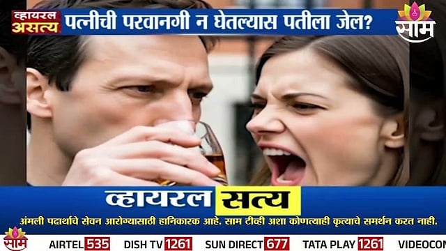 या व्हिडिओत खोडसाळपणा करण्यात आलाय...BNS च्या कलम 85B नुसार पत्नीचा छळ करणाऱ्या पतीवर कारवाई होऊ शकते...मात्र, दारू पिण्यासाठी पत्नीची परवानगी न घेतल्यास जेल होऊ शकते हा दावा असत्य ठरलाय...या दाव्याची पडताळणी करण्याचा हेतू दारू पिणाऱ्यांचं समर्थन म्हणून नाही...तर सत्यता पडताळणीसाठी केलाय...साम टीव्ही दारू पिणाऱ्यांचं समर्थन करत नाही...कारण, दारूने अनेक कुटुंब उद्ध्वस्त केलीयत...त्यामुळे दारूपासून तुम्हीही लांब राहा असं आवाहन आम्ही करतोय...