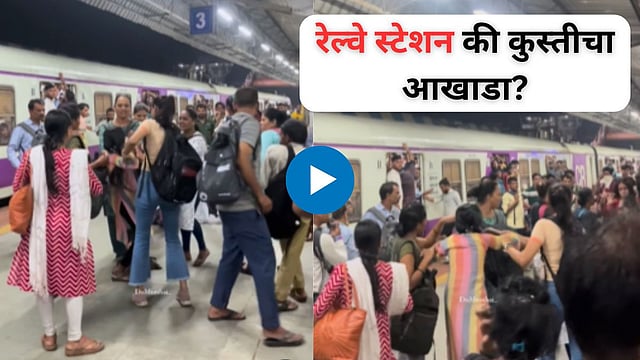 व्हायरल (Viral)होत असलेल्या व्हिडिओत तुम्हाला एक रेल्वे स्टेशन दिसून येत आहे.या रेल्वे स्टेशनवर एक लोकल ट्रेन थांबलेली दिसत असून या लोकलच्या दरवाजात अनेक प्रवासी थांबलेले आहेत,अशातच रेल्वे प्लॅटफॉर्मवरच काही महिलांमध्ये जोरदार राडा सुरु असलेला दिसत आहे काही वेळात याच महिलांमध्ये जोरदार हाणामारी सुरु होते.मात्र त्यातील काही महिला सुरु असलेली हाणामारी थांबवण्याचा प्रयत्न करताना दिसून येत आहे.