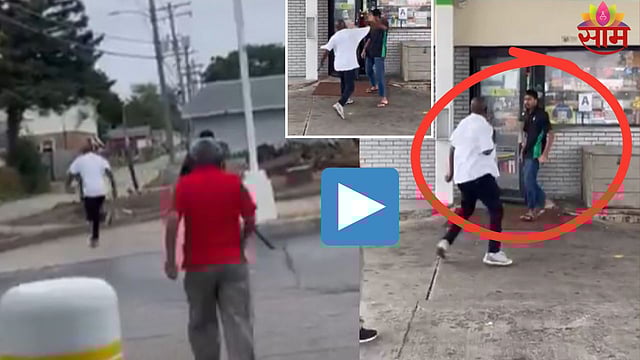 दोन ते तीन वेळा हा व्यक्ती तरूणाला मारतच आहे. जेव्हा हल्ला तीव्र होतो तेव्हा भारतीय तरूण दुकानात जातो तेव्हा ही व्यक्ती जिंकली असे गृहीत धरते आणि दारावर लाथा मारते. तेवढ्यात भारतीय तरूण काठी घेऊन त्याच्या मागे मारण्यासाठी धावताना दिसतो आहे. या तरूणाने का मारलं आहे याची माहिती नसून व्हिडीओ सोशल मीडियावर व्हायरल होत आहे. व्हिडीओ पाहून नेटकरी संतप्त झाले आहेत.