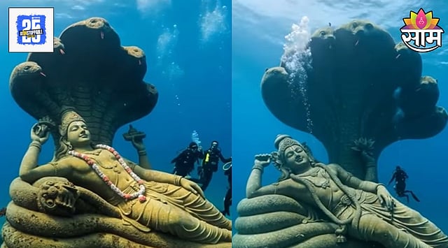 समुद्रात खोलवर एक मूर्ती दिसत आहे. हिंदू धर्मातील भगवान विष्णूची शेषशय्येवर विराजमान असलेली मूर्ती आहे. ही मूर्ती इंडोनेशियातील बाली बेटाजवळ समुद्रात ब्रिटन, इंडोनेशिया आणि भारताच्या संयुक्त संशोधन पथकाला सापडलीय. मूर्ती 5 हजार वर्षांहून अधिक जुनी आहे.