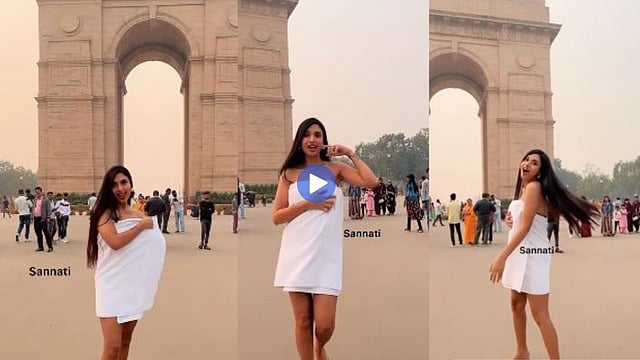 सोशल मीडियाच्या या काळात लोक प्रसिद्ध होण्यासाठी कोणत्याही थराला जायला तयार होतात. अनेक वेळा व्हायरल होण्याचे हे वेड मर्यादा ओलांडते. आता असेच काहीसे दिल्लीतील इंडिया गेटवर पाहायला मिळाले. जिथे एका मॉडेलने फक्त टॉवेल घालून डान्स केला. मॉडेलच्या या कृतीने इंटरनेट वापरकर्ते अजिबात प्रभावित झाले नाहीत. कोलकाता मॉडेल सन्नाती मित्रा हिने तिच्या इंस्टाग्रामवर हा व्हिडिओ पोस्ट केला आहे. ज्यामध्ये ती दिल्लीच्या इंडिया गेटसमोर पांढऱ्या टॉवेलमध्ये नाचताना दिसत आहे. सन्नाती मित्रा 2017 च्या मिस कोलकाता स्पर्धेची विजेती असल्याचा दावा करते. यापूर्वी, ती दुर्गा पूजा पंडालमध्ये इतर दोन महिलांसोबत एका वादग्रस्त छायाचित्रात दिसली होती.