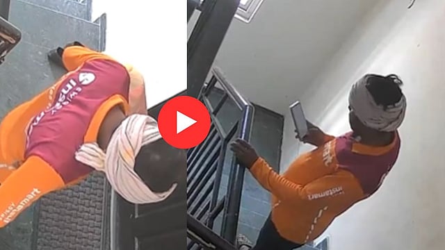 व्हायरल व्हिडिओमध्ये तुम्ही पाहू शकता की, स्विगीचा डिलिव्हरी बॉय पार्सल देण्यासाठी आला असून सुरूवातीला तो दाराची बेल वाजवतो. दरवाजा उघडेपर्यंत तो आजूबाजूला पाहून परिस्थितीचा आढावा घेतो. त्यानंतर काही वेळाने घरातून दरवाजा उघडून एक महिला पार्सल घेते. पार्सल घेतल्यानंतर तो पायऱ्या उतरून गेल्याचे नाटक करतो अन् पुन्हा येऊन शूज घेऊन पसार होतो.