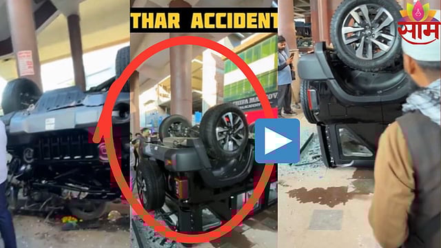 नवी कोरी थार रॉक्स शोरूमच्या पहिल्या मजल्यावरून थेट १५ फूट खाली जमिनीवर पडली आहे. प्रत्यक्षात म्हणजे शोरूमच्या पहिल्या मजल्यावर असलेली नवीकोरी थार रॉक्स कारची डिलीव्हरी होत होती. याचदरम्यान हा प्रकार घडला आहे. शोरूमच्या पहिल्या मजल्यावरू थार कार थेट खाली जमिनीवर पडली आहे.