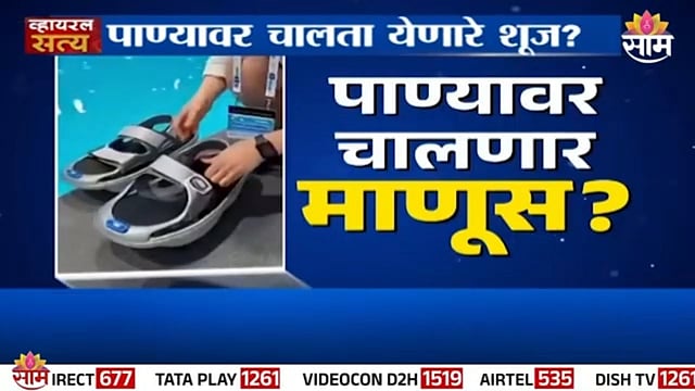हा व्हिडिओ पाहून तुम्हालाही आश्चर्य वाटलं असेल...कारण, हे शूज घातल्यावर पाण्यावर माणूस चालू शकतो...होय, असा दावा या व्हिडिओत करण्यात आलाय...बघा, ही महिला कशी शूज घातल्यानंतर सहज पाण्यावर चालतेय...हे शूज घातल्यानंतर माणूस पाण्यावर चालू शकेल...होय, या व्हिडिओत जसं दाखवलंय तसंच तुम्हीही हे शूज घालून पाण्यावर चालू शकता...बघा, ही महिला हे शूज घालते आणि पाण्यावर चालतेय...पाण्यात ती उड्याही मारतेय तरी ती पाण्यात बुडत नाही...या शूजमुळे पाण्यावर माणसाला चालणं शक्य होणार असल्याचा दावा केलाय...स्पेनमध्ये हे शूज तयार करण्यात आल्याचा दावा केलाय...त्यामुळे आम्ही या दाव्याची पडताळणी सुरू केली...खरंच पाण्यावर चालण्यासाठी शूज स्पेनमध्ये तयार करण्यात आलेयत का...? हे शूज घालून खरंच पाण्यावर सहज चालणं शक्य आहे का...?