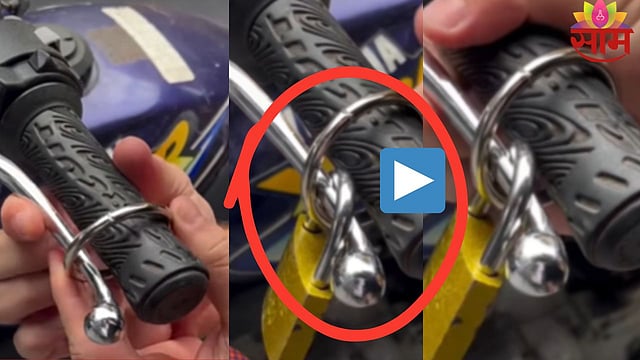 सोशल मीडियावर व्हायरल होत असलेल्या व्हिडीओमध्ये तुम्ही पाहू शकता की, दुचाकी चोरीला जाऊ नये म्हणून एक व्यक्ती एका गोल कडीच्या सहाय्याने ब्रेक आणि हॅडल लॉक करताना दिसत आहे. यामुळे दुचाकी चोरली तरी ति पुढे जाऊ शकणार नाही.