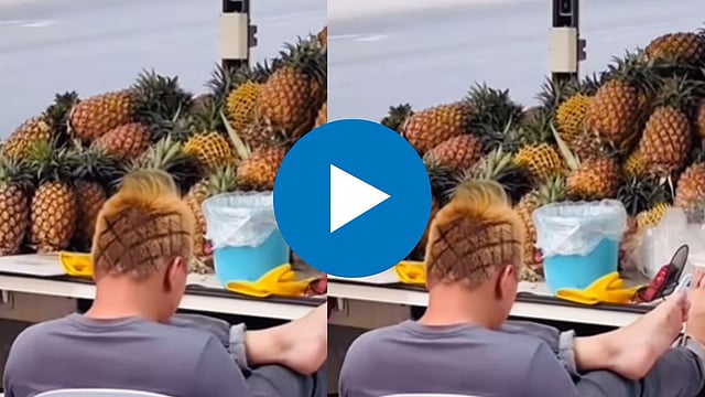व्हायरल व्हिडिओ हा परदेशातील आहे. त्यात एक अननसाची हातगाडी दिसत आहे. त्याच्यासमोर विक्रेता एका खूर्चीत बसल्याचे दिसत आहे. त्याच्या केसांची हेअरस्टाईल ही अननसासारखी आहे. खरेदीदारांनी त्याच्या हातगाडीवर येऊन अननस खरेदी करावे यासाठी त्याने हा अनोखा जुगाड केला आहे. याचा व्हिडिओ सध्या सोशल मीडियावर प्रचंड व्हायरल होत आहे. (Jugaad Viral Video)