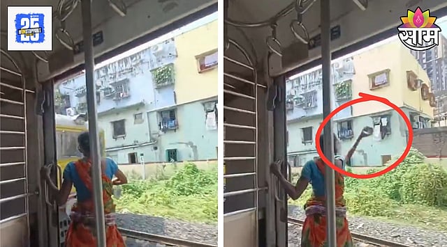 Viral : सोशल मीडियावर व्हायरल होणाऱ्या व्हिडीओमध्ये एक वृद्ध महिला चालत्या लोकल ट्रेनच्या दाराशी उभी राहून शेजारच्या ट्रॅकवर येणाऱ्या ट्रेनवर मोठा दगड फेकताना दिसते. ही घटना मुंबईत घडल्याचा अनेकांनी दावा केला आहे. या व्हिडीओची सोशल मीडियावर मोठी चर्चा पाहायला मिळत आहे. मुंबई पोलिसांनी या व्हिडीओच्या खाली कमेंट करत त्यामागील सत्य समोर आणले आहे.