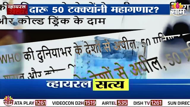 दारू, कोल्ड्रिंक्स, तंबाखू नियमित सेवन केल्याने कॅन्सर, डायबिटीस आणि लठ्ठपणा यासारखे आजार वाढतात...जर या घातक वस्तूंवर अधिक कर लावला तर हे सेवन करण्याचं प्रमाण कमी होईल असा WHOचा अंदाज आहे...आणि यामुळे कॅन्सर, डायबिटीससारखे गंभीर आजारांवर नियंत्रण घालता येईल...WHO ने कर 50 टक्क्यांनी वाढवा असं आवाहन केल्याचा दावा आमच्या पडताळणीत सत्य ठरलाय...मात्र, भारतात अजून दारू, कोल्ड्रिंक्सवरील कर वाढण्याबाबत निर्णय झालेला नाही...