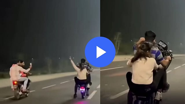 रिलच्या नादात जीव गमावणाऱ्यांची संख्या दिवसेंदिवस वाढत चालली आहे. काही जण आपला जीव धोक्यात घालून स्टंटबाजी करताना आढळतात. असाच एक व्हिडिओ सध्या सोशल मीडियावर धुमाकूळ घालत आहे. या व्हिडिओमध्ये एक तरुण बाईक चालवत असून त्याच्या मागच्या साईटला तरुणी बसली आहे. हे दोघे प्रियकर प्रेयसी असल्याचं म्हटलं जात आहे.