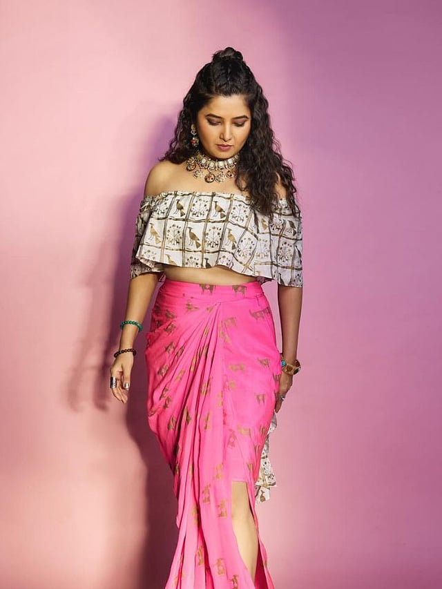 या फोटोशूटमध्ये तिने सतरंगी (रंगीत) स्कर्ट आणि स्टायलिश टॉप परिधान केला असून तिचा मॉडर्न लूक चाहत्यांना खूप आवडला आहे.