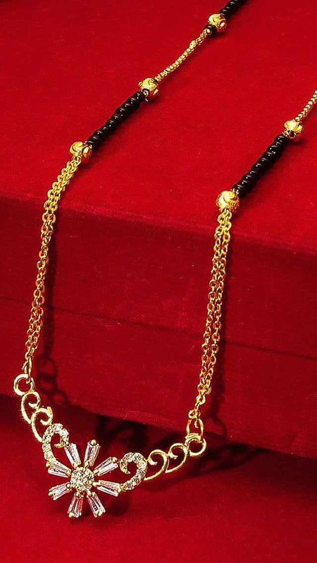 फ्लोरल मंगळसूत्र कायमच ट्रेंडमध्ये असते. अमेरिकन डायमंडमध्ये हे मंगळसूत्र तुम्ही निवडू शकता ज्यामध्ये फुलांच्या आकाराचे पेंडट असते.