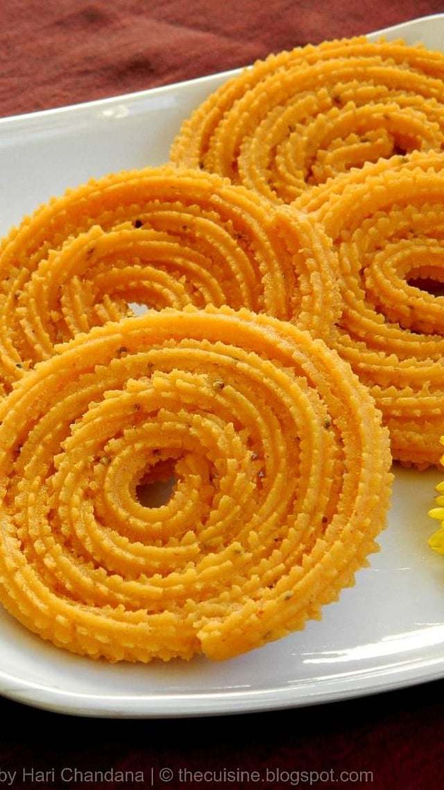 पारंपरिक चकलीत जीरे, हळद आणि लाल तिखट टाकून सुगंधी बनवतात.