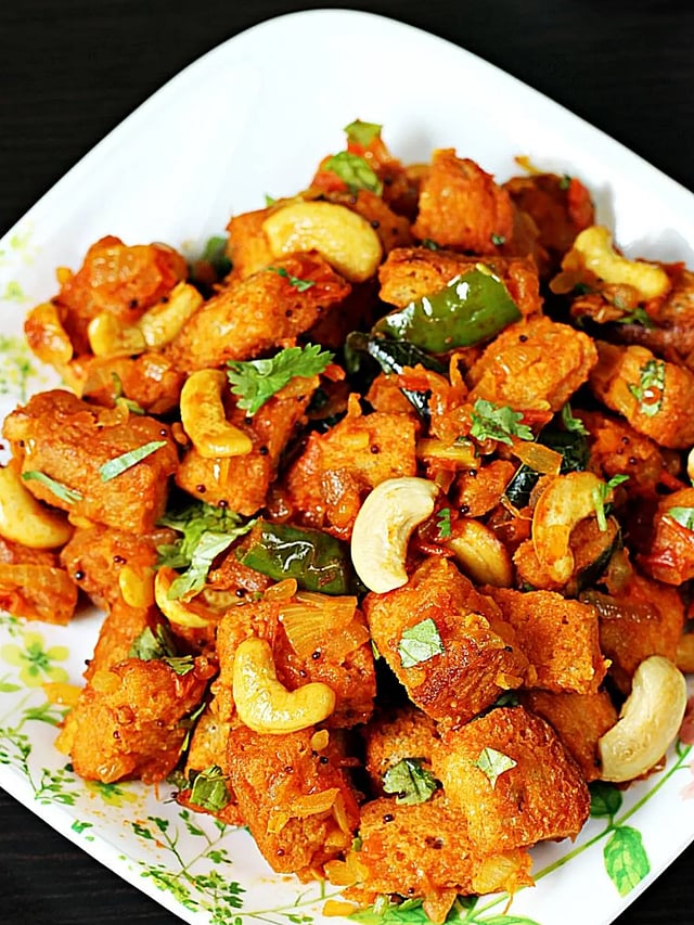 ब्रेड, काजू, शेंगदाणे, मोहरी, उडीद डाळ, हिरवी मिरची, कढीपत्ता, हिंग, कांदा, आले पेस्ट, टोमॅटो, मीठ, हळद, लाल तिखट, साखर, कोथिंबीर.