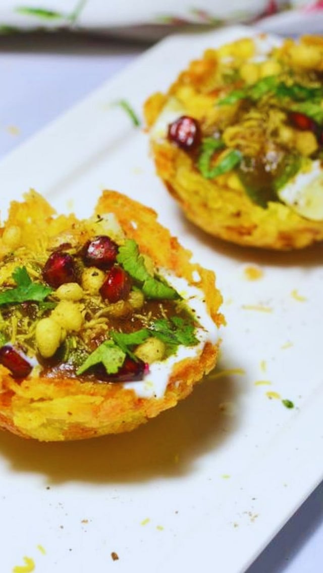 एका वाटीत हे मिश्रन टाकूननंतर अलगद तेलात वाटी सोडा म्हणजे मिश्रणाला कटोरीचा आकार येईल.