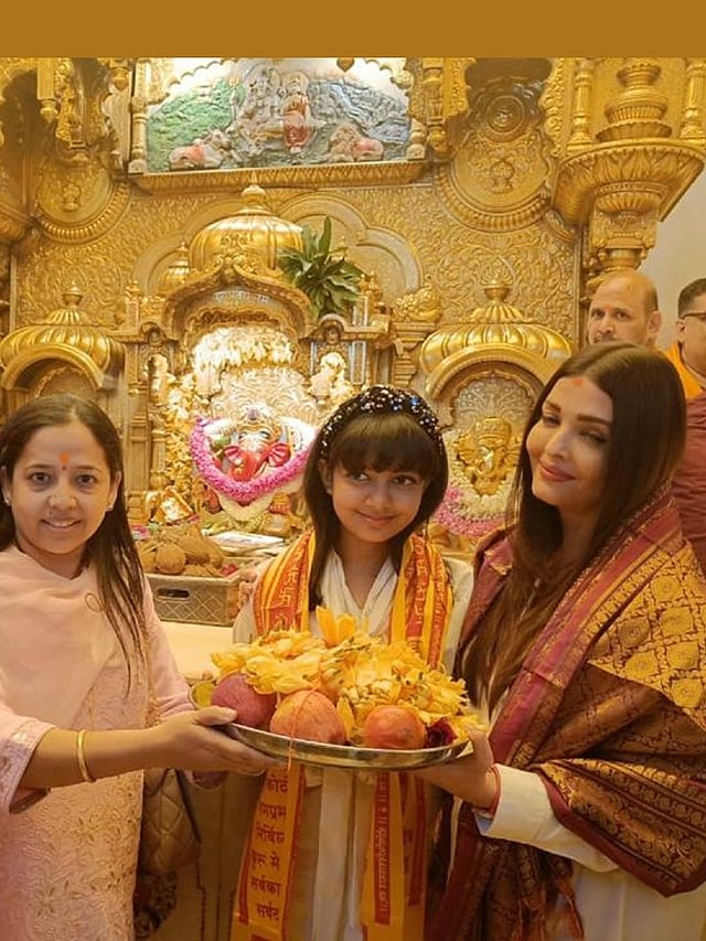 अभिनेत्री ऐश्वर्या राय-बच्चन ही मुलगी आराध्यासोबत जन्मदिनानिमित्त सिद्धिविनायकाच्या दर्शनाला पोहोचली