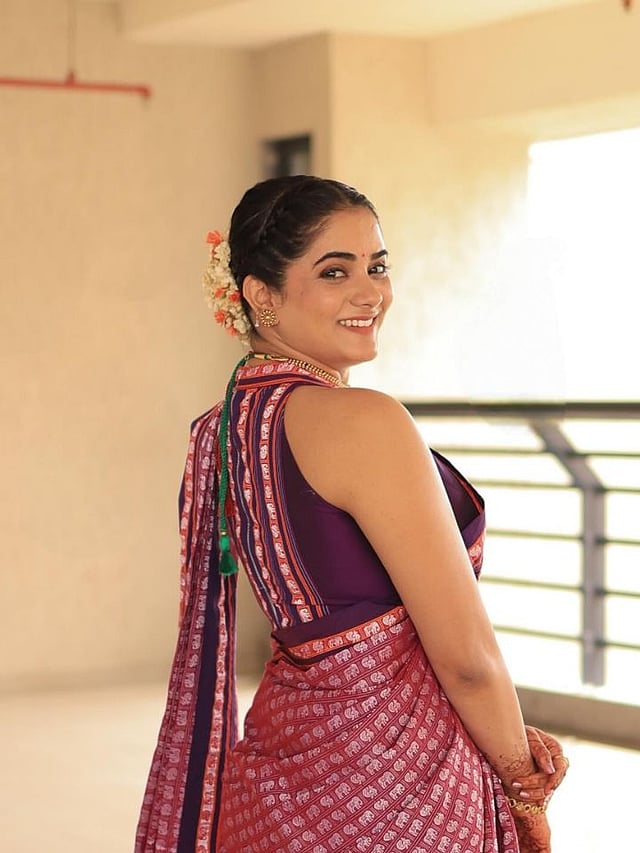 भाग्यश्रीने मराठमोळ्या अंदाजात खास साडी नेसली आहे. ती खुपच सुंदर दिसत आहे.